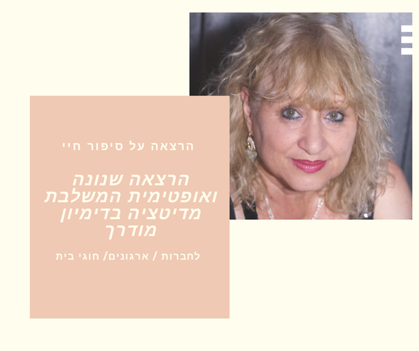 הרצאות  שנותנת שפע טיפים לחיים, מדיטציה, דמיון מודרך והמון אופטימיות.